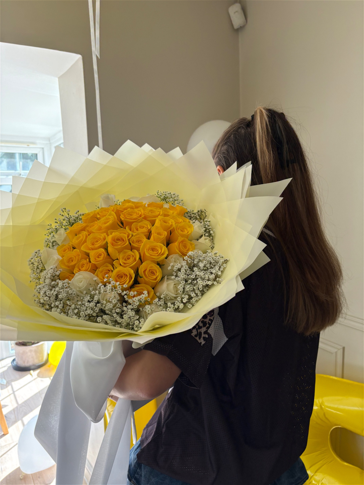 Beautiful yellow rose bouquets, presented in water in a box or bag
